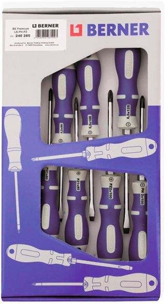 Set carton de 7 tournevis lame ronde avec 6 pans fente - PH - PZ.