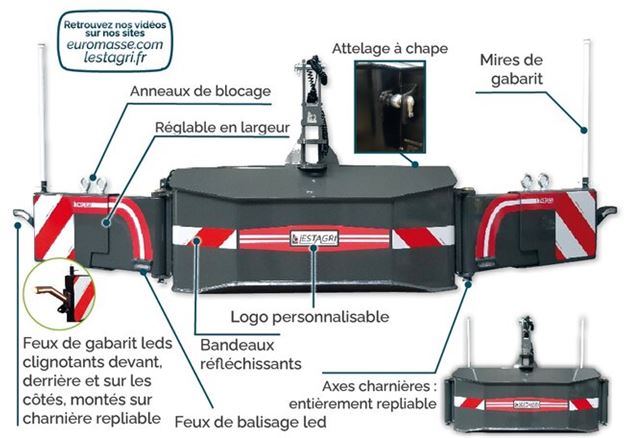 - Fourni avec mires de gabarit + feux à LED + réfléchissants + feux de gabarit LED