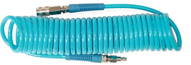 • Tuyau spiral Ø6,5X10mm - Longueur 7,5m - Tuyau Polyuréthane, Pression max: 10bar - Bonne résistance aux torsions et à l'abrasion - Raccords tournants - Connexions avec jupes de protection - Raccords rapides ISO